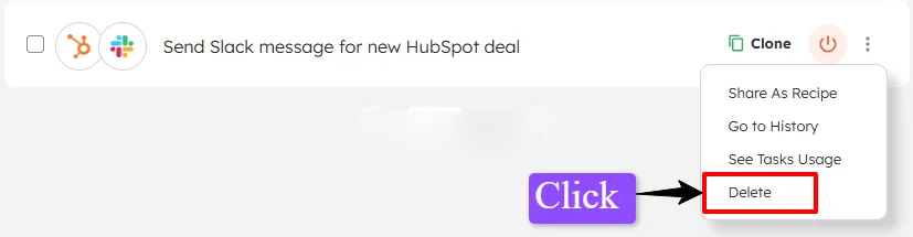 Therefore, uninstalling the HubSpot account will erase all the data pertaining to that automation from Integrately, permanently.