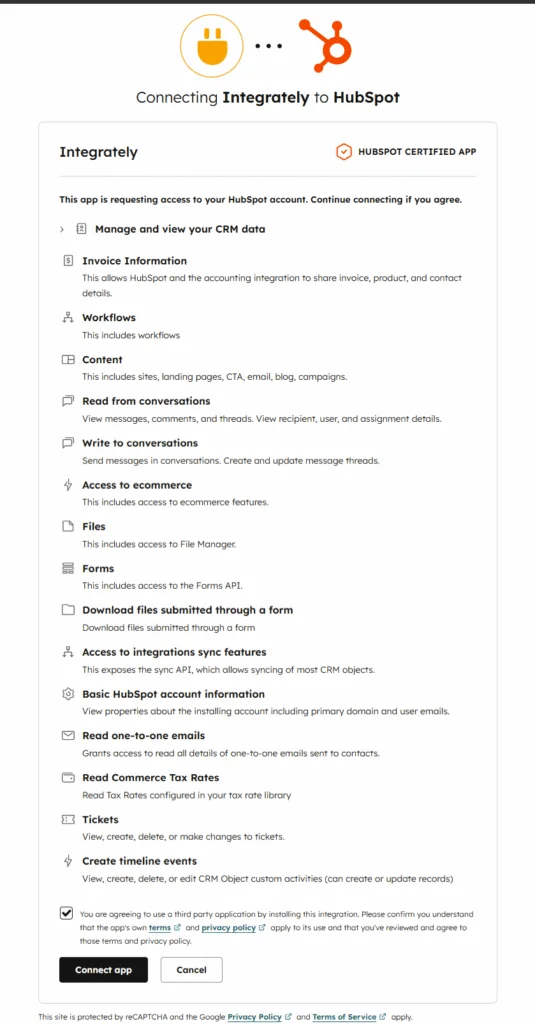 Once you click Connect app, HubSpot will redirect you back to Integrately, and your account will be connected successfully
