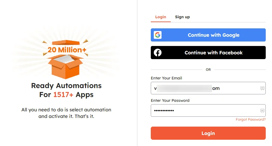 After clicking Activate, Integrately will prompt you to connect your HubSpot account. This is a one-time setup.